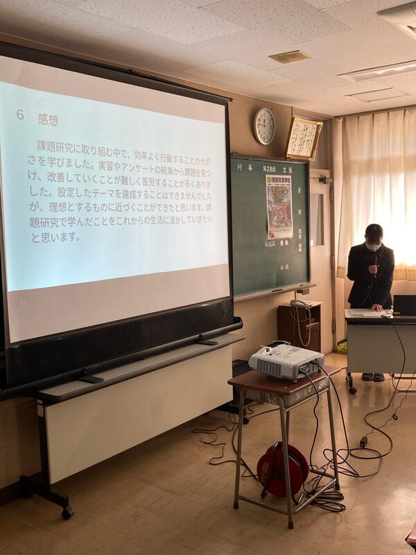本日1月18日(水)3〜6時間目に食品科学科3年生の課題研究発表会が行われました。1年間をかけて精一杯取り組んできた課題研究発表者全員の様子をぜひご覧ください。