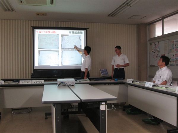 7月30日(木)に『田んぼの学校in幸野溝with南稜高校』体験イベント企画検討会議が、南稜高校会議室で行われました。『田んぼの学校』は、水土里ネットを主催団体として毎年実施されています。今年は、南稜高校で楽しいイベントが実施されます。水土里ネット百太郎溝より2人が来られ、農業クラブ役員の3人が企画案をプレゼンしました。次回の会議は8月10日です。より良いイベントになれるように頑張ります。