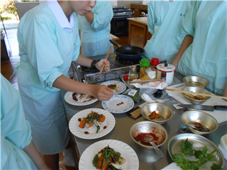 盛りつけ方や、ドレッシングの調味など、みんなで意見を出し合いながら研究しました。