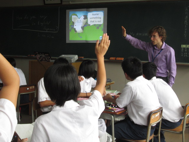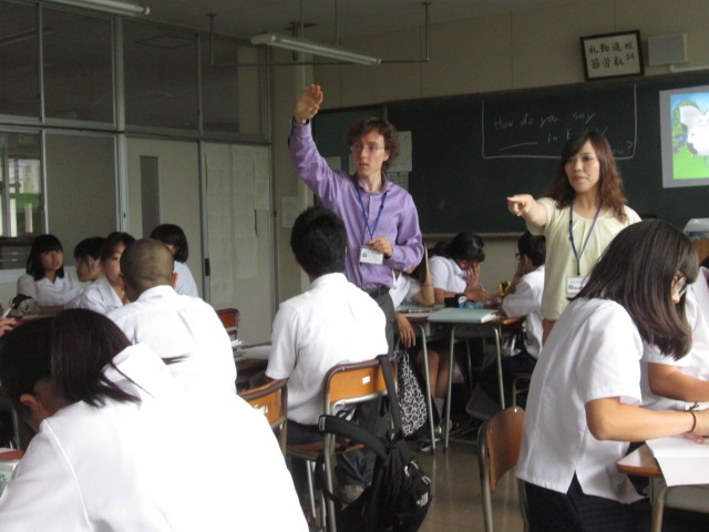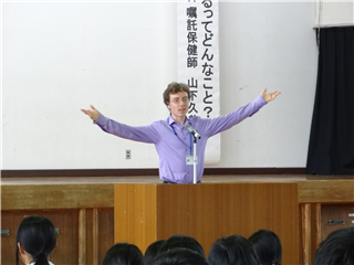 ALTのチャールズ先生と嶋﨑先生による模擬授業です。