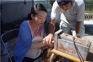 生活経営科1年生は鶏のくちばしを切るデビークをしました。