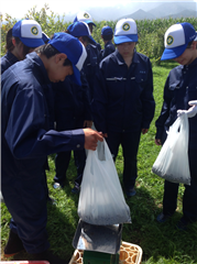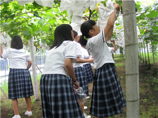 続いて、実際に学科の取組を体験です。実習製品でのアイスクリーム作りや、ブドウやトマトの収穫、草花の鉢上げ体験を行いました。