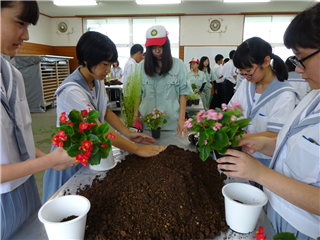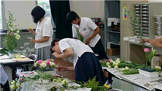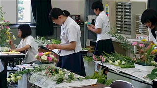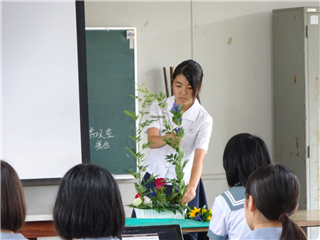 それぞれ、花材と花器の特徴を考え、自分の思いを込め世界に一つだけの素敵な作品を作ってました。作品は本校事務室前に展示します。