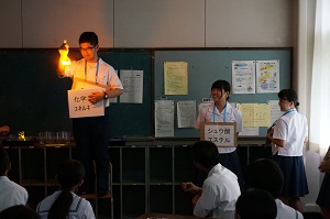 1年生の生徒が発光のしくみを寸劇を交えて説明しました。
