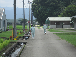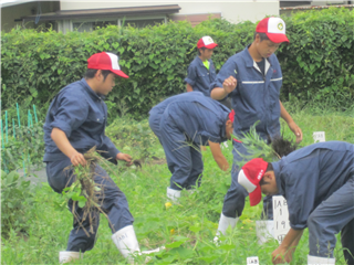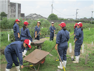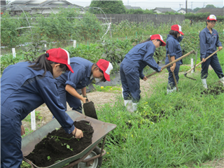 農場を散歩すると農場実習に励む生徒の姿を発見しました。