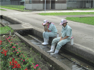 農場を流れる水路は休憩スポットです。         暑いのは私たちも一緒!暑中お見舞い申し上げます!!