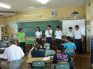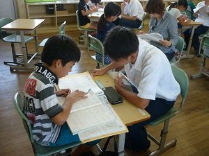 7月21日から8月6日まで免田小学校で「夏休み学習会」が実施されていますが、児童たちの学習を支援するボランティアとして、本校の生徒も参加しています。