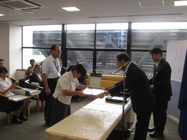 7月29日(水)熊本空港において、花卉展示の感謝状・目録贈呈式がありました。熊本空港のロビーに花を展示していることに対してのお礼です。紫藤校長、3年園芸科学科の大柳さんが参加。県内の農業関係高校10校が参加。