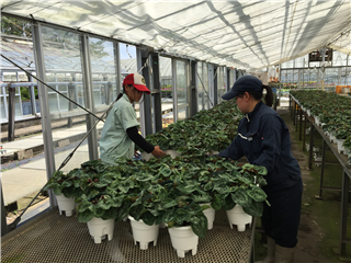 左側は養鶏実習です。右側は草花の実習です。シクラメンの栽培をしています。
