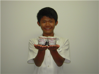 商品を持ってくれているのは、食品科学科1年谷くん(錦中)です。