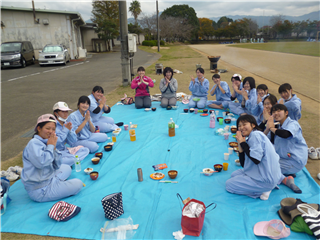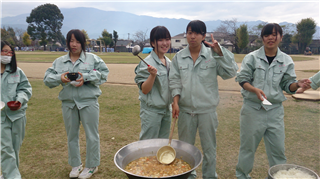 ~グラウンドの隅で炊きだし![]()
