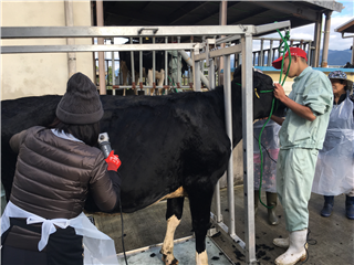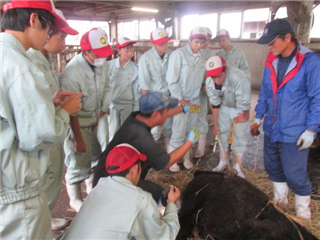 第2回公開授業、本日6限目「肉牛の繁殖と育成」の研究授業が2年生産科学科で行われました。牛の去勢です。初めての経験で、みんな真剣なまなざしです