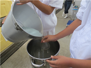 乳製品の酸による凝固性、卵白の気泡性を、実習をつうじて実感することができました。