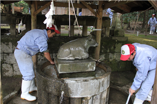 牛も痛そうにしています。おいしい肉にするには大切な作業です。