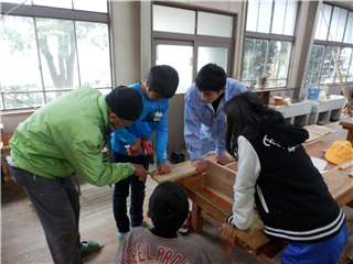 今回の作業は、ノコギリを使い、寸法に合せて各パーツを作る作業です。