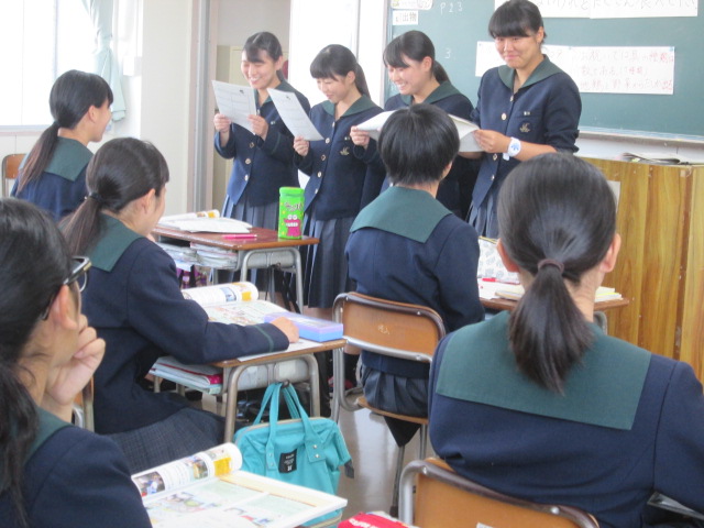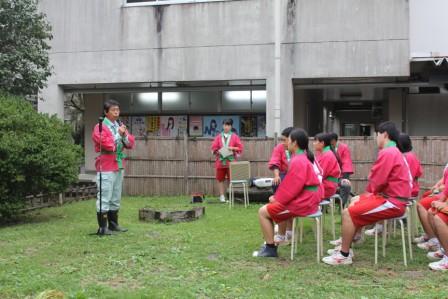 県内の保健委員さんや先生方、200名程を前に始めは緊張した面持ちでしたが、堂々と発表することができました。 制服の紹介