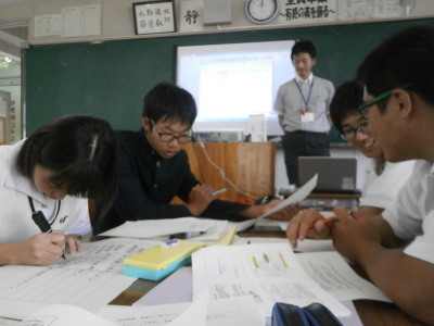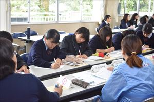午後は、他校の生徒とグループになり、「クロスロードゲーム」を通して、災害時、さまざまな立場になったとき、自分がどのような選択をするのか考えました。