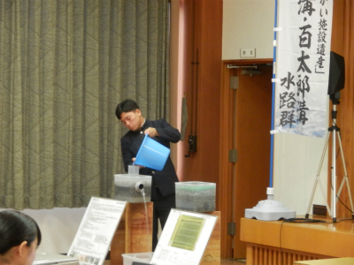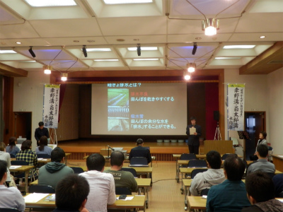 環境工学科の生徒が暗渠排水の仕組みについて、プレゼンテーションをしてきました。