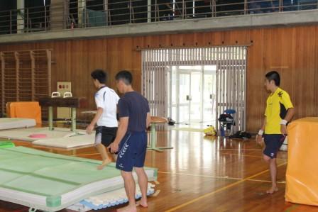 被災から数時間、ここに避難者が3000人いる。現在、2000食分の非常食が確保できた。以降の見通しは今のところない。