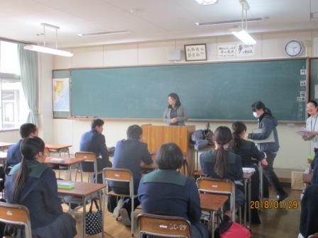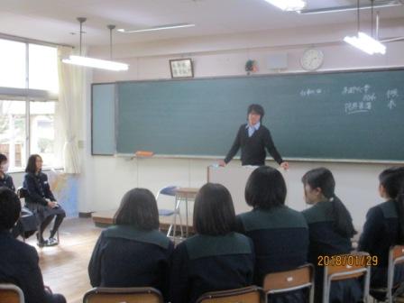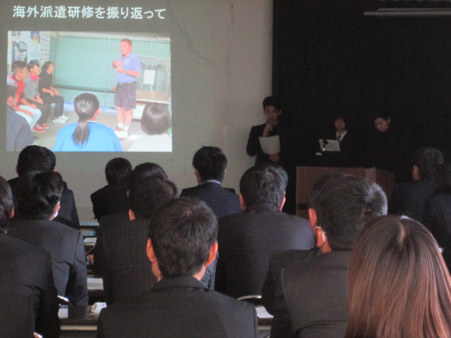 1月26日(金)熊本農業高校で、平成29年度熊本県高等学校教育研究会農業部会研究発表大会が行われました。会の中で、海外視察研修会報告で、2年普通科総合コースの前田君が、NICCでオーストラリアにファームステイした体験を報告しました。八代農業高校食品科学科2年の椎葉さんと2人での発表で、20分間、分かりやすく発表しました。
