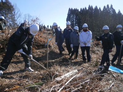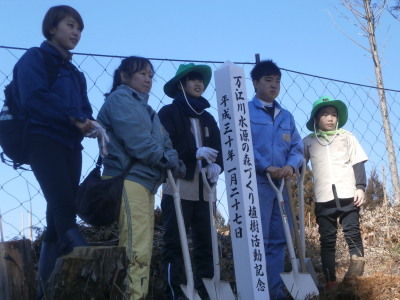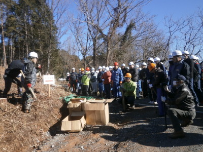 その後、百太郎溝から取水した水を通す水路工事の現場を見学しました。