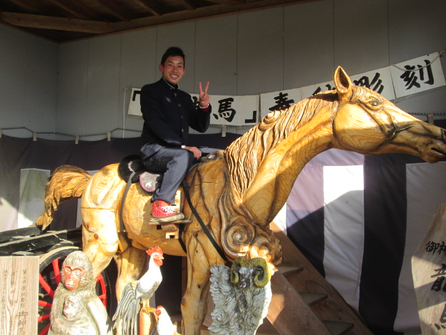 球磨郡あさぎり町にある南稜高校の馬術部員たちが愛馬とともに初詣をし大会での必勝と安全を祈願しました。