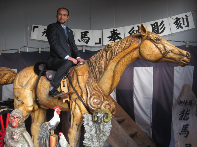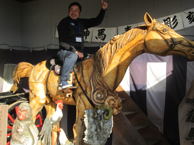 神社では馬に乗ったままお祓いを受け中尾璃菜キャプテンが玉串を奉げて今年一年の好成績と安全を祈願しました。