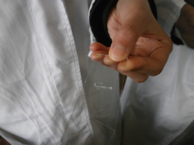 まず、仁原地区のパイプライン改修工事の現場で、石綿セメント管から