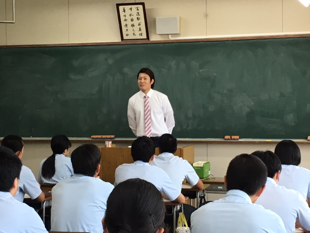 卒業生の高橋君が来校してくれました。2年前に卒業し、岡山のフジパンで頑張っているようです。南稜にはたくさん卒業生が来校して近況報告をしてくれます。