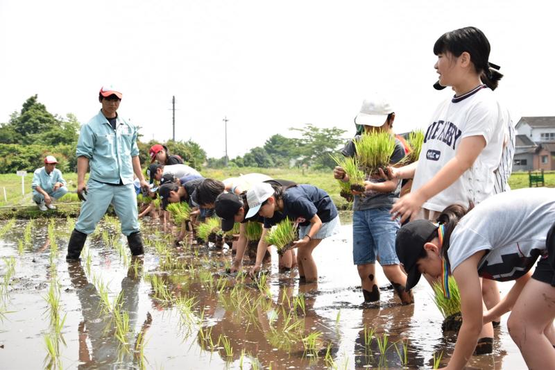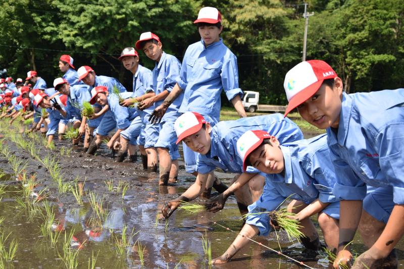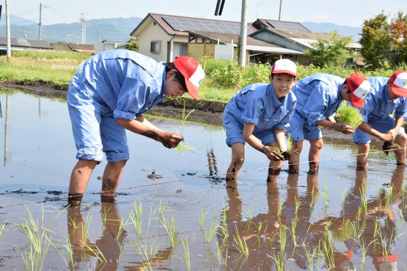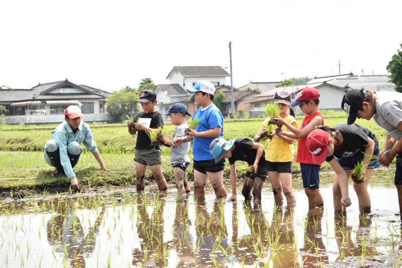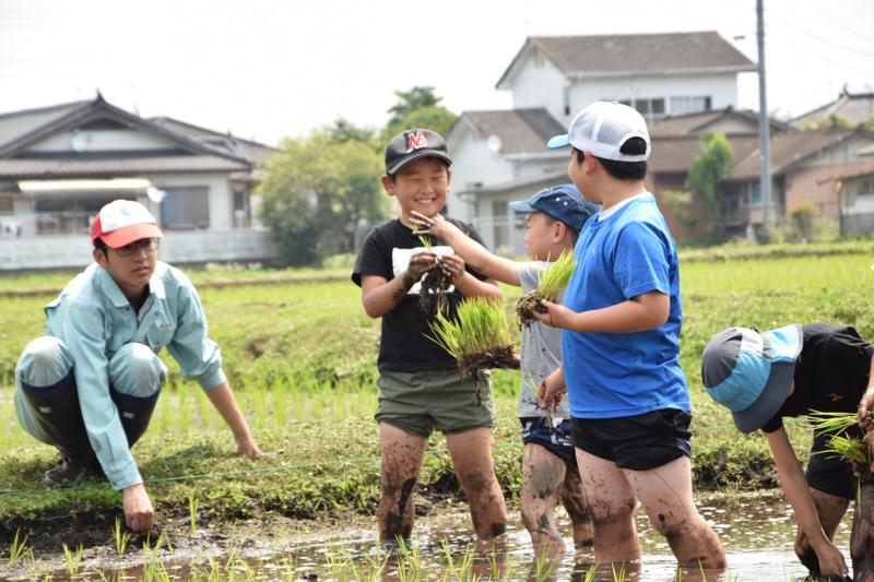 6月22日、球磨地域の小学生を中心に農業体験活動を行なっているくまそアカデミーの小学生24名と田植え体験を行いました。