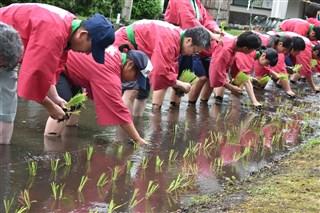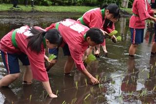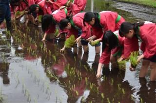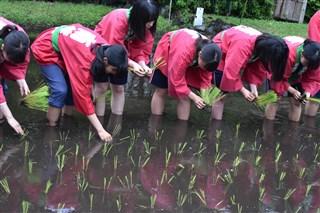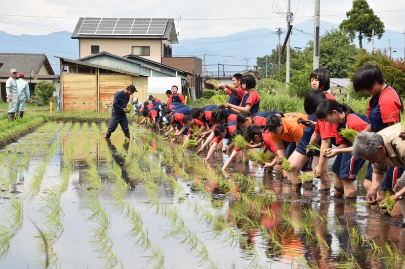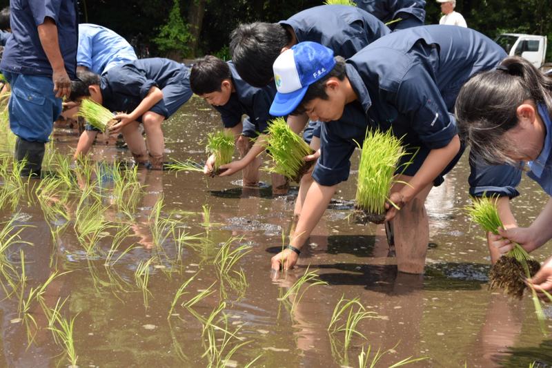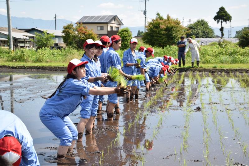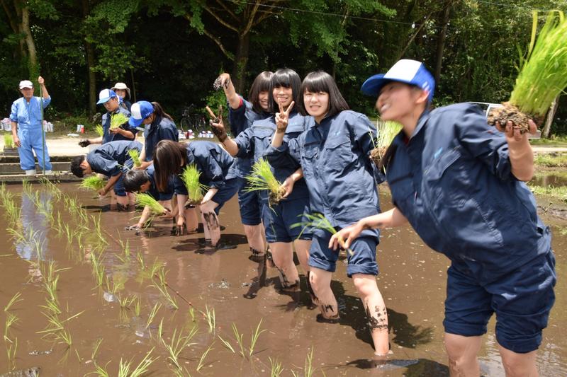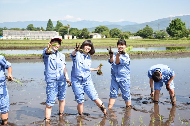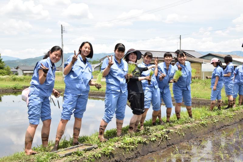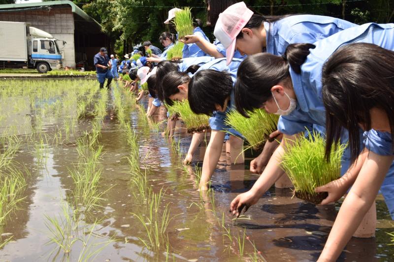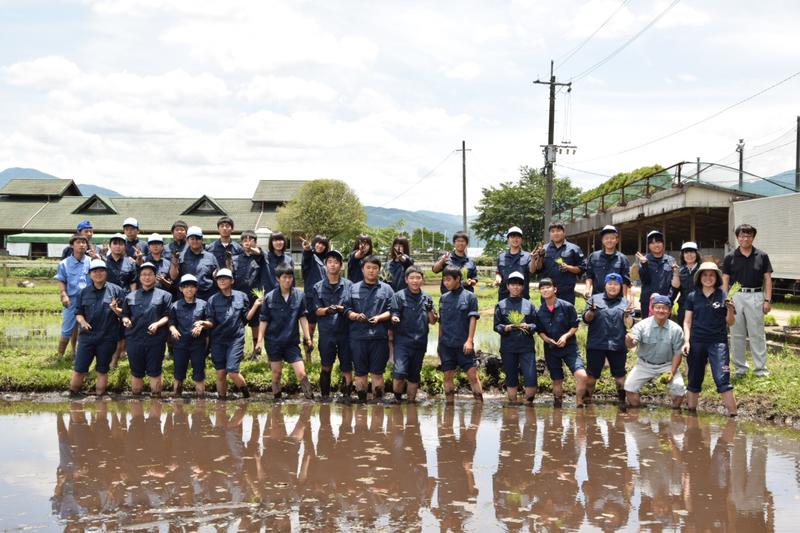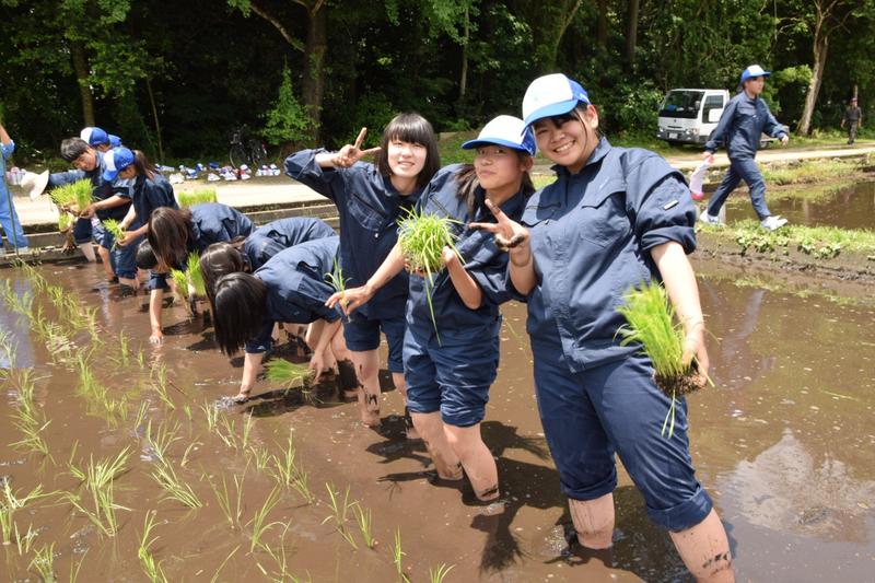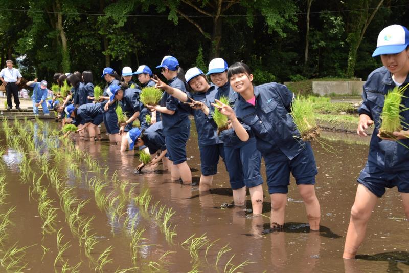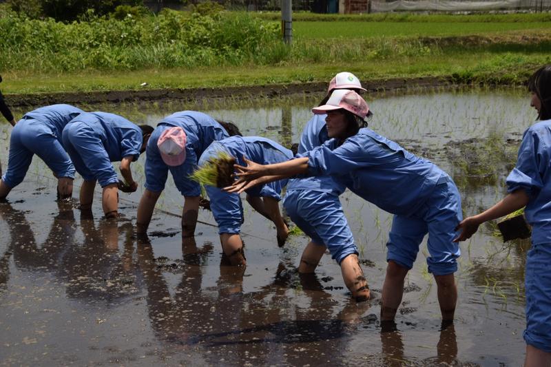 3,4限目は生活経営科と食品科学科で田植えを行いました。