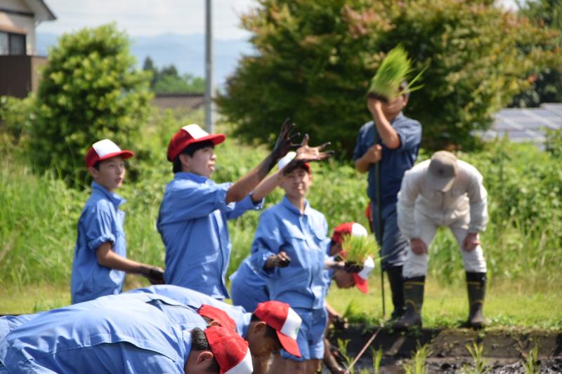 今日は一年生の田植え実習です。絶好の田植え日和となりました。