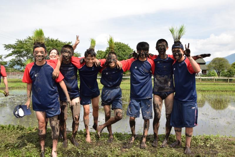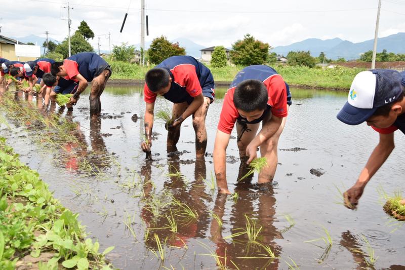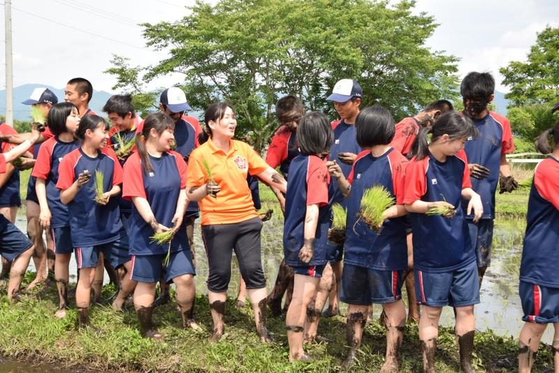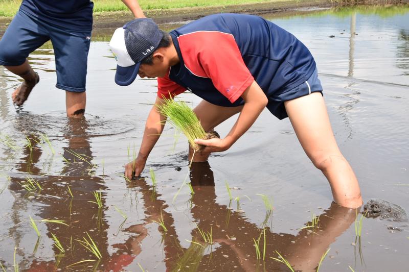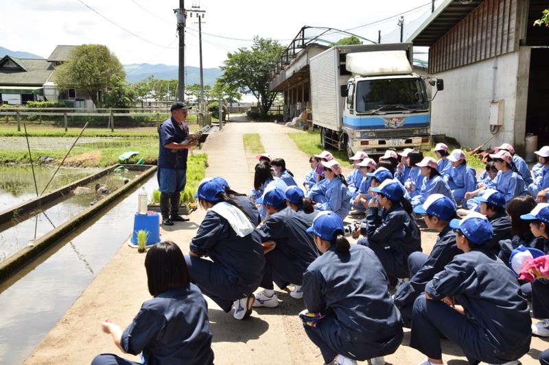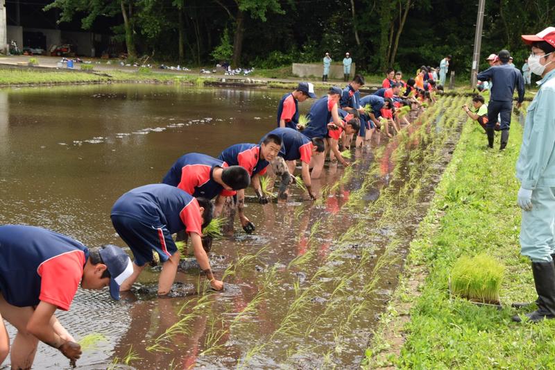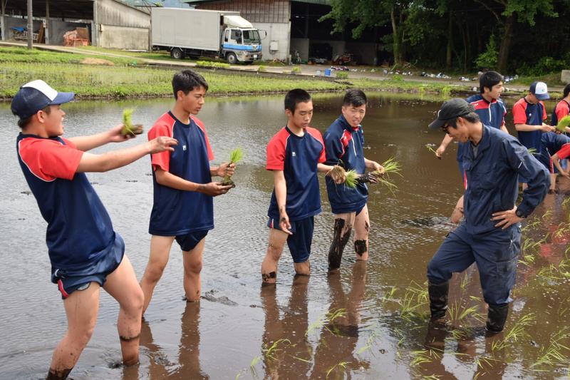 5.6限目は普通科体育コース、福祉コースが田植えを行いました。