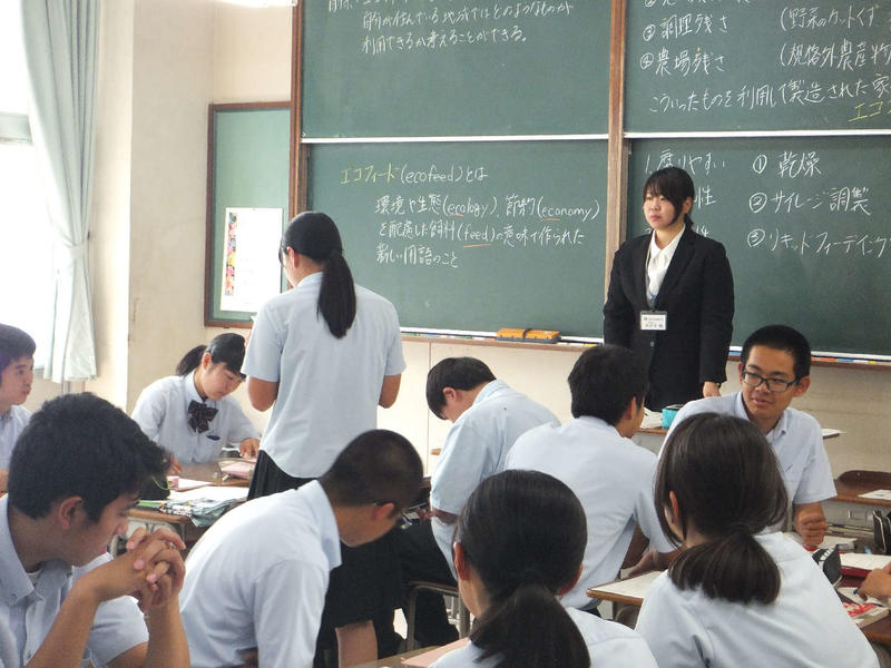 6月13日6限目に井手永教育実習生の研究授業が行われました。緊張した様子でしたがエコフィードについてしっかり教えることができました。生徒たちもよく理解できたようでした。現在、3名の実習生が教育実習に励んでいますが、明日で2名は2週間の実習を終えます。今回の実習での学びを今後に生かしてください。