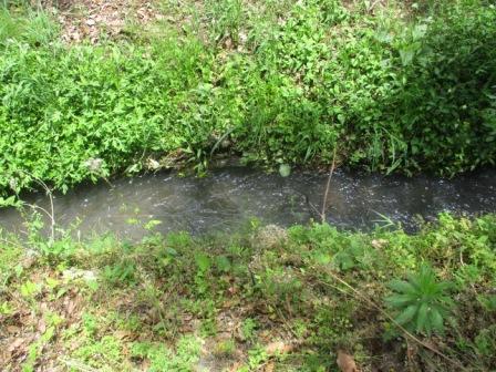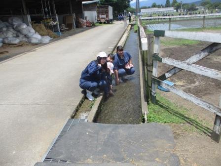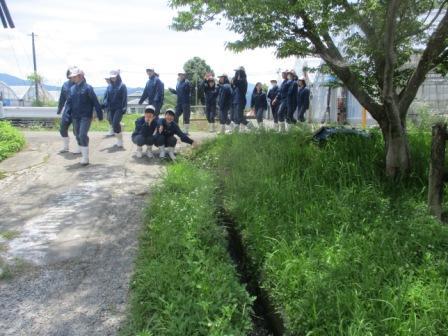生活経営科2年「球磨農林学」で、本校農場及び校内を流れる水路を上ってみました。この水路は創立80周年事業で当時の生徒や先生方が造られたものです。