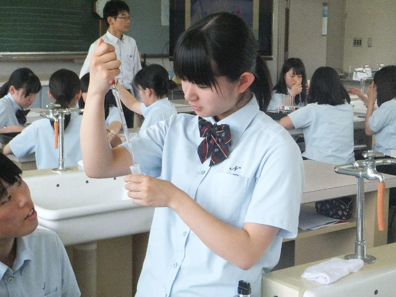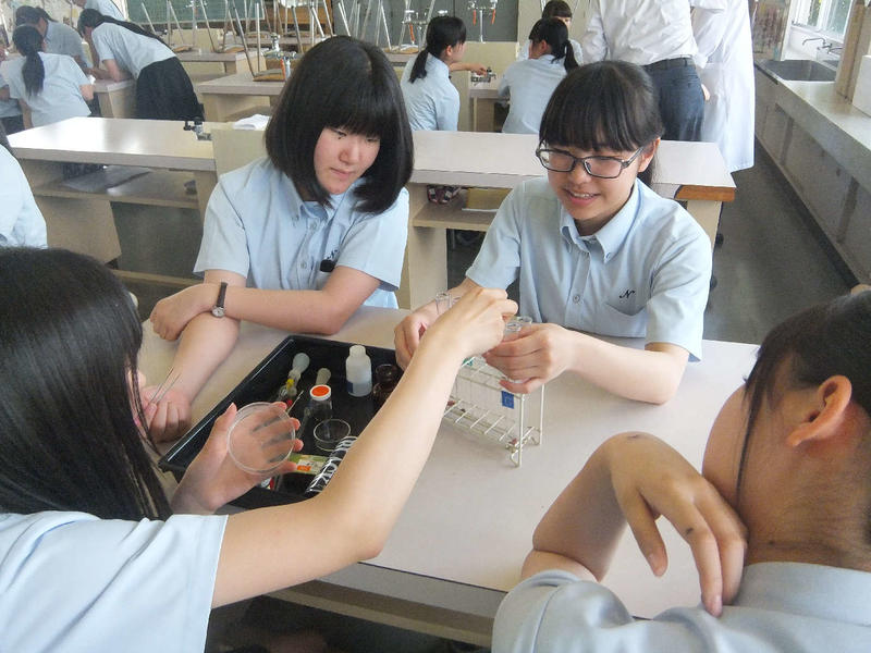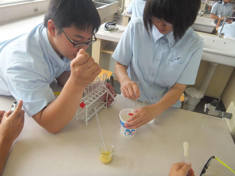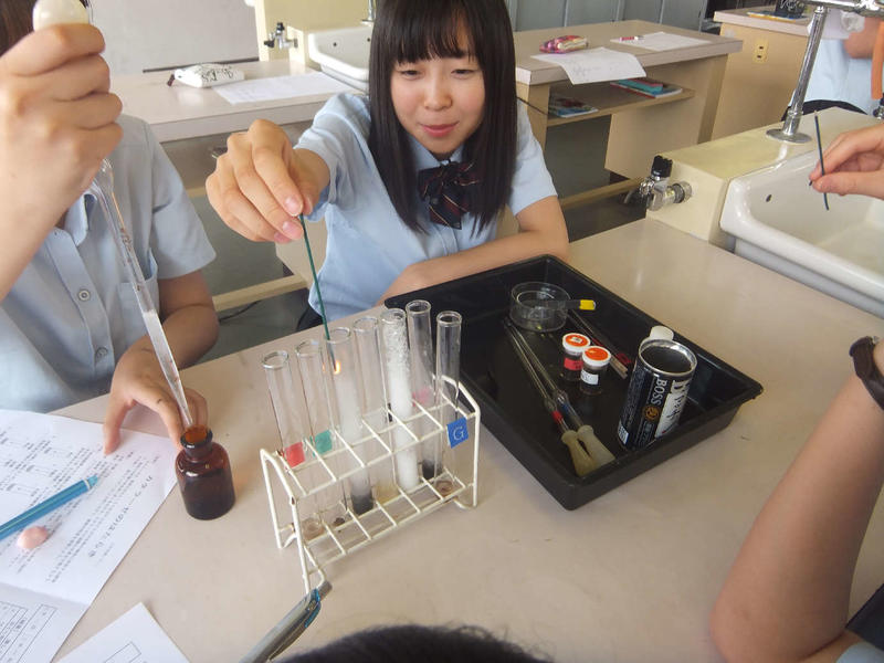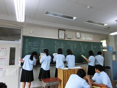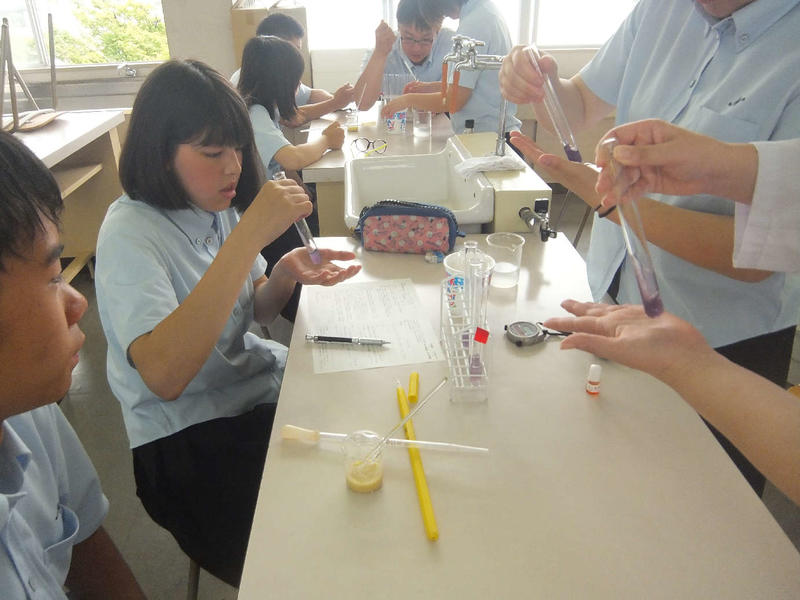 6月21日、公開授業最終日の研究授業は渡邊先生の化学と人間「酵素の働き(実験)」と外山先生の数学A「場合の数」でした。双方ともわかりやすくまとめた授業となっていました。
