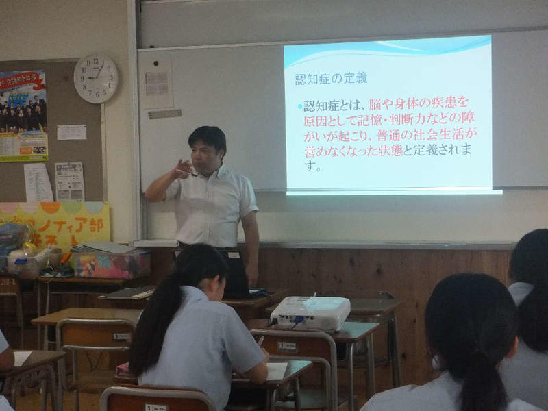 6月20日の1・2限目、普通科福祉コースの2年生が介護初任者研修の一環として、外部講師をお招きし認知症について学びました。