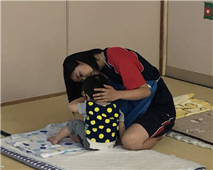 前半は、保育士の仕事やこども園の子ども達の様子について講義で勉強しました。後半では、粉ミルクの作り方、おむつの替え方の実践をとおして、子どもに愛情もって接することの大切さを知ることが出来ました。