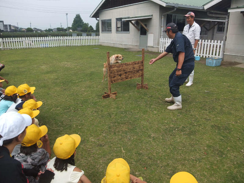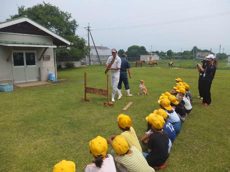 須恵小学校1・2年生が生活科見学で小動物舎に来てくれました。動物たちの演技と触れ合いに満足そうでした。