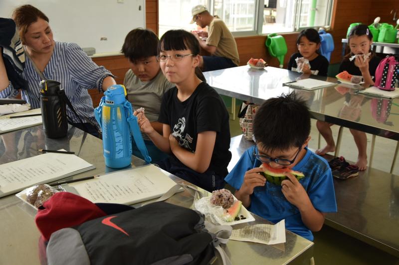 田植え後は南稜米のおにぎりと差し入れのスイカを食べました。