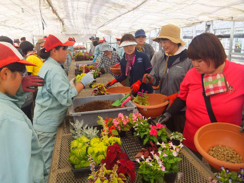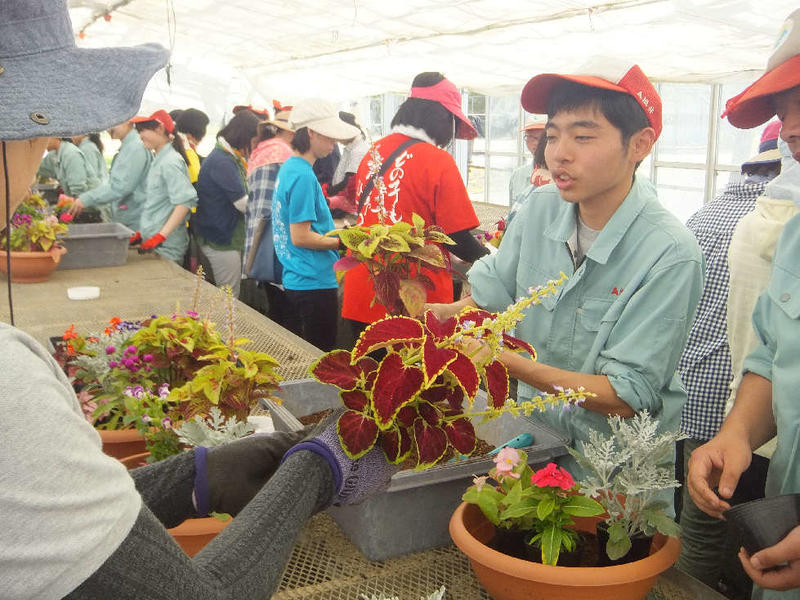 6月25日、球磨地区保育園の保育士の皆さんが寄せ植え体験を楽しまれました。生徒たちもアドバイザーとして、寄せ植えをお手伝いしました。各保育園でも寄せ植えや花壇での栽培を楽しんでください。