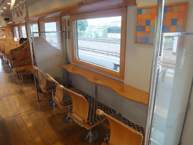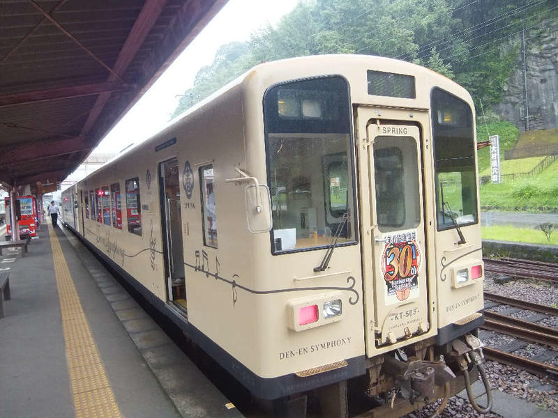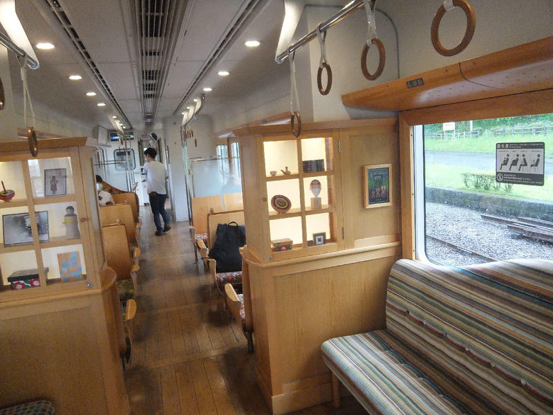 本校生のほぼ半数が利用するくま川鉄道は、人吉・球磨を走るローカル鉄道で、観光列車「田園シンフォニー」としても運行される5種類の車両が走っています。各車両とも水戸岡鋭治氏がデザインし、ベートーヴェンの「田園」をモチーフに車体には「田園」の一節を表す音符が描かれています。内装は、やわらかな木目調でこれが通学列車かと驚きます。生徒たちは、広々とした窓から人吉球磨の田園風景や清流川辺川を眺めながら登下校します。生徒たちにすれば当たり前の風景ですが、贅沢な生活とも言えます。