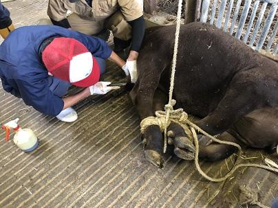 2年総合農業科動物コースの生徒は肉用牛の去勢実習を行いました。
