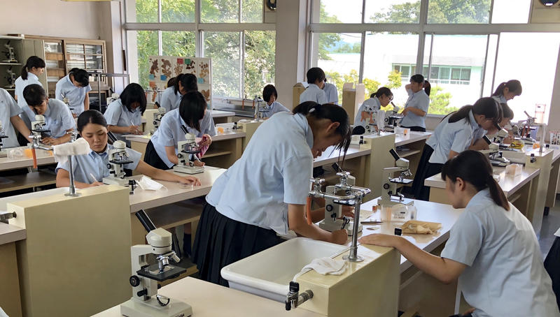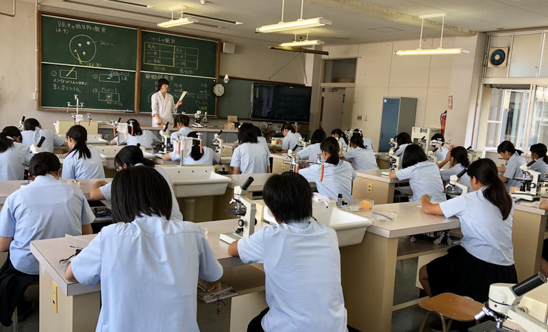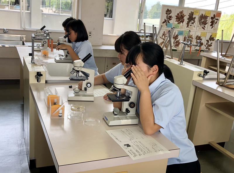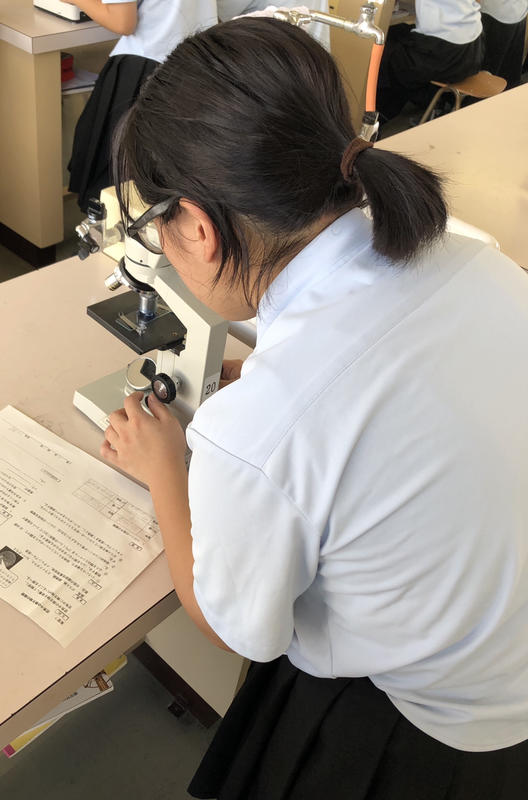 9月12日、科学と人間生活の授業で、顕微鏡を使用した菌の観察を行いました。
