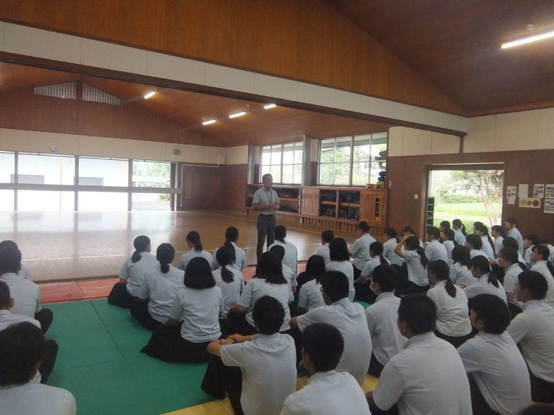 9月11日、3年生の就職進学試験主権者激励会が行われている時間帯に、1年生では武道場において総合選択科目説明会が行われました。それぞれの選択科目の担当者が内容や特徴を説明し、生徒たちは受講科目を決めて行きます。すでに、進路も含めた活動が始まっています。それぞれの夢や進路の実現のためしっかり選択してください。