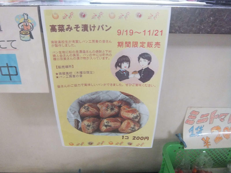 また、19日から2ヶ月限定(木曜のみ)で販売される高菜みそ漬けパンのポスターも掲示されていました。