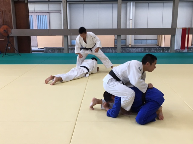 9月15日(日)の稽古の1コマです。三角締めからの押さえ込みを、3つのパターンから反復練習しています。
