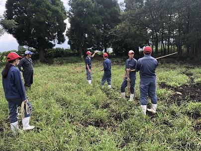 今日は畜産の授業でも運動会の練習?いや、それ以上に疲れたかも。今日は放牧中の牛を捕まえる実習を行いました。捕まえる2頭(褐毛和種)は他の放牧地に移動させるため、1頭は鼻環(びかん。牛の鼻につけてある輪。これで牛をコントロールしやすくしています)が外れた牛に、再装着するため。2年生は初めての牛捕獲実習。さてさて、うまくいくでしょうか。