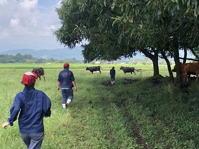 最後の牛を捕まえたときにはみんなで拍手。農業の授業は面白いなと感じた時間でした。