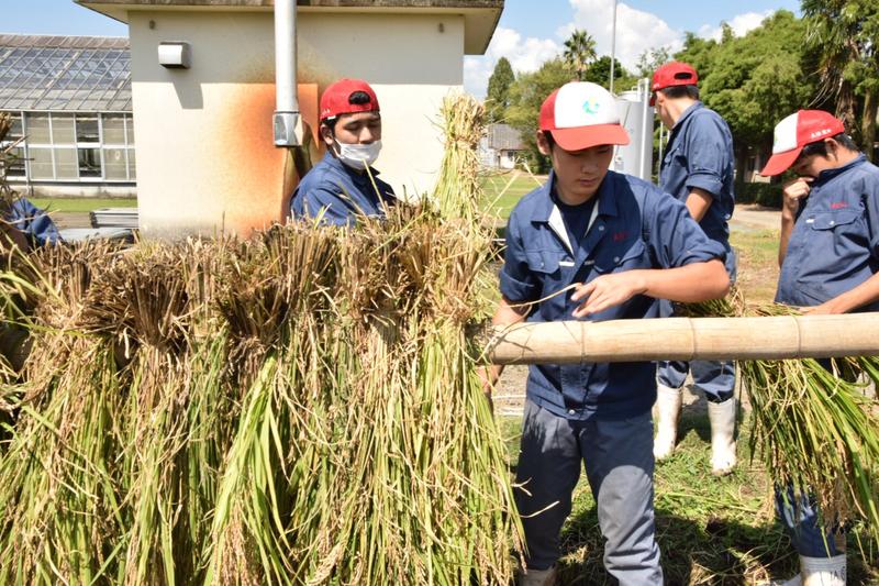 9月18日、南稜高校で栽培する古代米(赤米)の収穫を行いました。